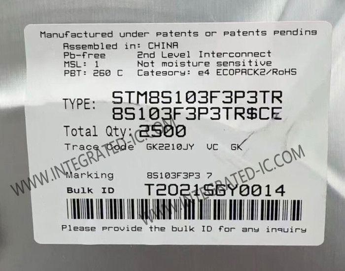 STM8S103F3P3TR ∆ιαδικτυακή γραμμή πρόσβασης 8-bit MCU με 8 Kbytes Flash, 16 MHz CPU, ενσωματωμένη EEPROM.