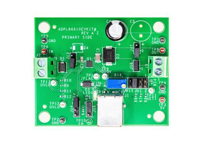 Πίνακας αξιολόγησης σχεδιασμένος για τον περιοριστή ρεύματος 250mA ADPL86610, παρέχοντας ολοκληρωμένες δυνατότητες δοκιμών και ανάπτυξης για ενσωματωμένες λύσεις.